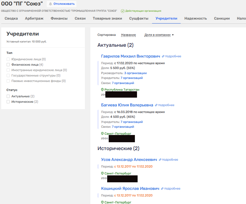 Кстати, по компании «Ударник» (ликвидировано в апреле 2025 года) Усов связан с одиозным олигархом Андреем Березиным и его партнёрами. При этом среди владельцев наблюдается и некая Галина Георгиевна Петрова. А Сердюкова в бытность его главой налоговиков Петербурга связывали с авторитетным бизнесменом Геннадием Петровым, который потом был арестован в Испании вместе с Александром Малышевым, как один из лидеров «тамбовско-малышевской» ОПГ.