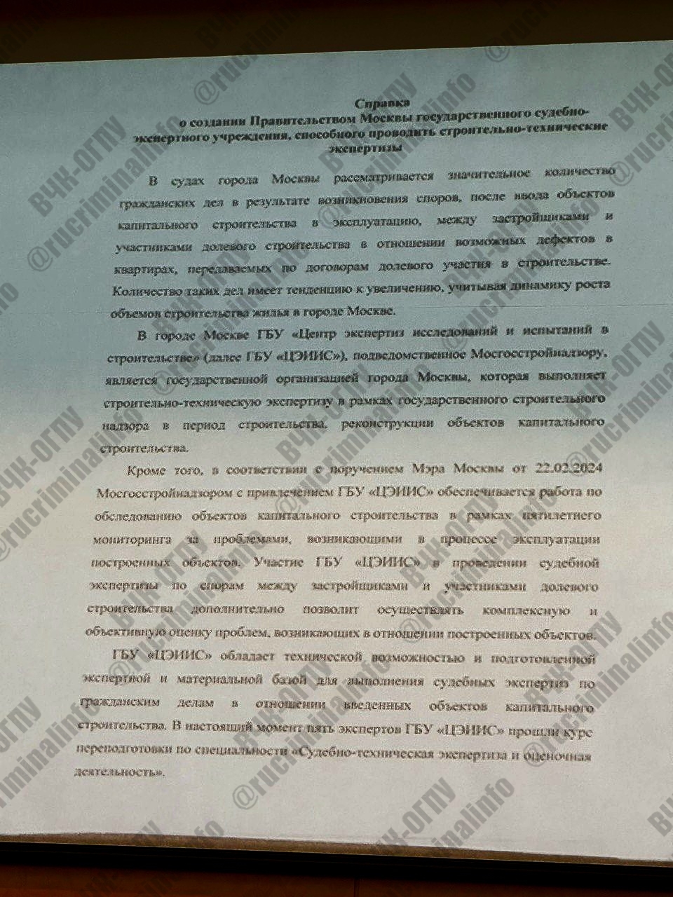Developers complained that they were being sued a lot for deficiencies in constructed objects, and in these cases, forensic examinations were appointed to independent organizations over which they had no influence. And it was proposed to open a state expert company with controlled persons. And again, PIK and Samolet, having shipped a decent amount, achieved the opening of the State Budgetary Institution "Center for Expertise in Research and Testing in Construction" with controlled and compliant persons. On 02.08.2024, at a meeting of judges in the Moscow City Court, this company was presented to the judges via a projector and they were told that forensic examinations on developer cases should be assigned there. (See photo) After which, the judges began to assign forensic examinations to this organization, but it physically could not cope with the volumes and began to return cases back to the courts without execution. Currently, the organization is actively hiring forensic experts, forensic examinations are assigned by the Shcherbinsky Court. But I dare to assume that after the staff will be fully staffed, it is this organization that will be assigned the overwhelming majority of forensic examinations in cases of developers, and how the deficiencies will be considered by the persons controlled by the developers, the managers of this organization, you yourself understand.
