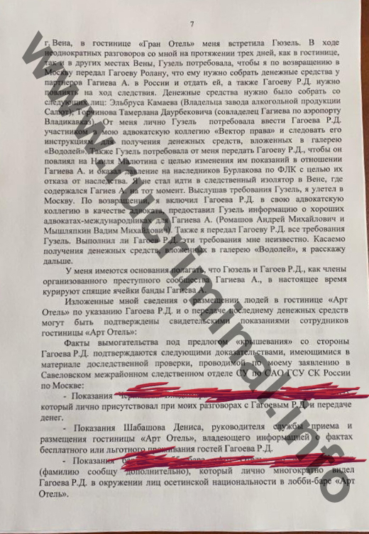В число лиц, приближенных к Гагиеву А.М., входил с 2009 года и Торчинов А.Д., который неоднократно встречался с Гагиевым А.М. в г. Москве, в г. Анталия Турции, выполнял различные его поручения. После 2011 года в связи с произошедшими между Гагиевым А.М. и Торчиновым А.Д. конфликтами, отношения между ними испортились, и Гагиев А.М. высказывал прямые угрозы убийством в отношении Торчинова А.Д., в связи с чем последний реально опасался за свою жизнь и постарался прекратить все контакты с Гагиевым А.М.
